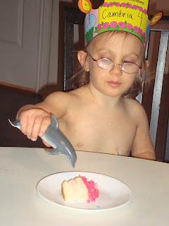 Cambria's birthday was on a Thursday, she had a fun time at school and didn't want to take her hat off. She loves birthdays and this was her day. Kyle had to be at school, so we just did a few little things at home.